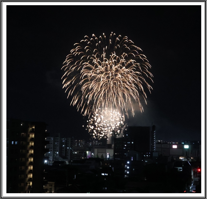 | 10月27日 王座戦大5局、匠君勝利。藤井君6冠に後退、匠君2冠。どちらも23歳だ。 どちらも応援してるので、まあ、ライバルが出てきて藤井君のためにはよかったかも。 匠君の冷静な差し回し、所作、表情、素晴らしい。どちらも23歳とは思えない落ち着きと風格がある。 歯が痛いのが気になって、久しぶりに歯医者へ。舌の違和感のことも聞いたり、どちらも病院へ 行ったらよくなった気がする。目も痛くて、頭痛がするので昨日今日とセデスを飲んだり。 寿命が尽きるまで、生きていくのは試練だ。ストレッチは1日も欠かさず、休みたいと思いながら しっかりやってるし、掃除のルーティンもしっかりこなしてる、外には買い物しか出ないけど。 コスモスもアサギマダラも今年は無縁。ただ25日の花火は7階から、久しぶりに見た。 三人で、夏ではないので、人もほとんどいなかった。 動画はまずまずだけど、静止画は全然ダメ。 |