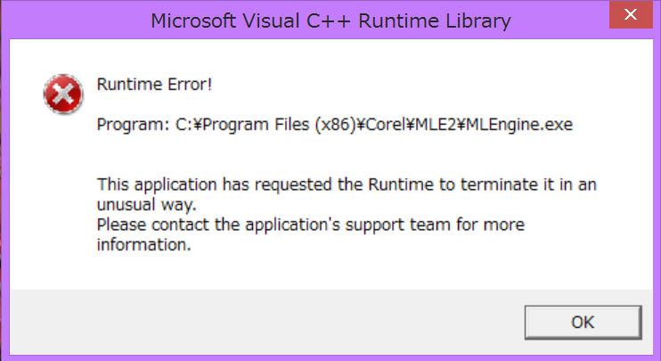 2015年12月16日 21時過ぎ、回復で8.1に戻す作業開始、 21時半、再起動が始まったと思ったのに、画面が真っ暗な状態から なおらない、21時40分不安にかられて、つい電源ボタンを押してしまった。1分後すぐに起動させたが、ようこその画面が出た後、やっぱり、 真っ暗、マウスの軌跡は見えるが・・・ 嫌な予感、リカバリか、と、リカバリディスクを出そうと引き出しを 開けたがマニュアルはあるけれど、ディスクはない。作ったはずと思うけど、今朝になっても見つけられない。どこになおしたかなど、 思い出せない。 朝になって、まずこれ。 MLE2\MLEngine.exe Corelのものらしい。それとGoogle Chromeを開こうとしたら エラーになったので、再度インストール。